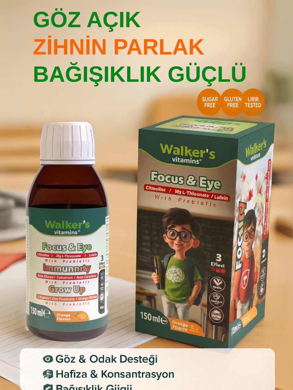 Walkers Focus Eye Kids Şurup Sitikolin Lutein Beta Glukan 150 ml