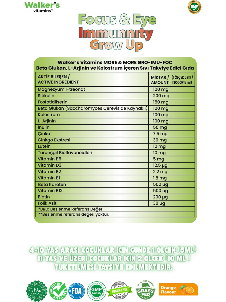 Walkers Focus Eye Kids Şurup Sitikolin Lutein Beta Glukan 150 ml (WLKRS796195)